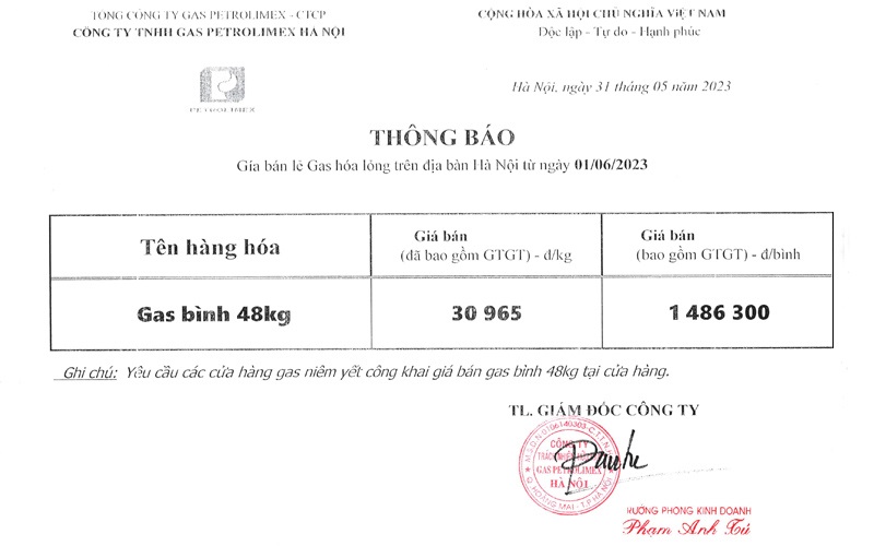 Chúng tôi xin thông báo đến Quý khách Giá Gas Petrolimex tháng 6 năm 2023 như sau: